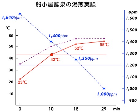 そこで、高濃度天然炭酸冷鉱泉である船小屋鉱泉を使って、湯煎実験を繰り返し行いました。