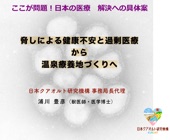 2016年12月のくるめ革新懇話会で講演したスライド集です。日本や世界の医療問題、日英の健康保険制度の違い、ドイツのクアオルトについての解説です。