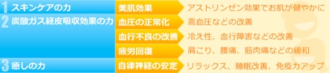 天然の炭酸泉に恵まれたヨーロッパでは、ローマ帝国時代から飲用と入浴として、健康維持、病気治療やリハビリテーションなどの療養目的で利用されてきた顕著な生理作用と薬理作用を有する『薬湯』です。